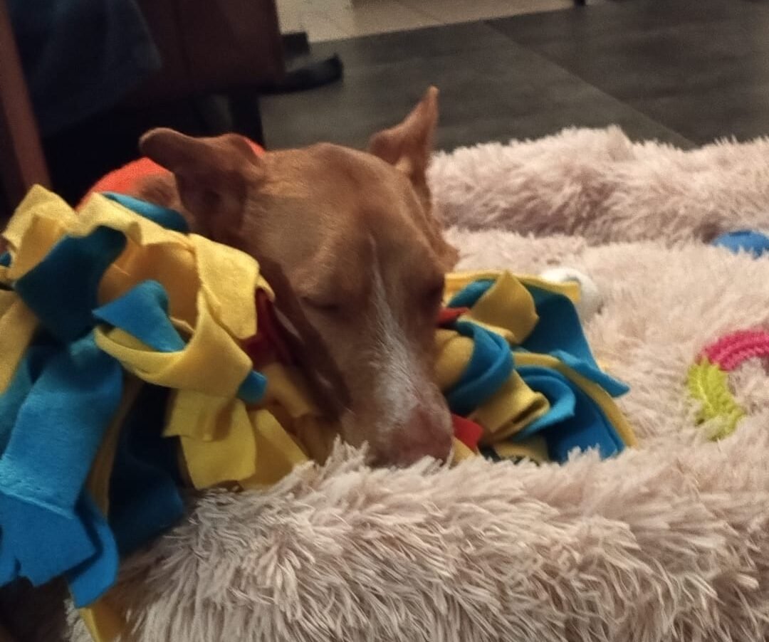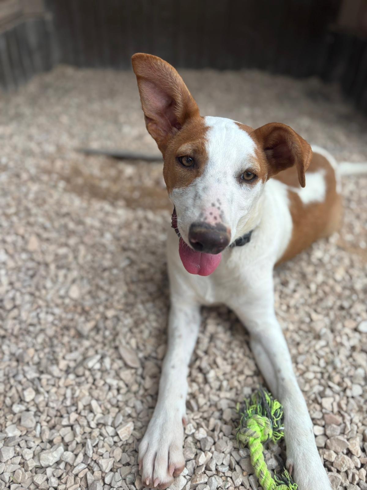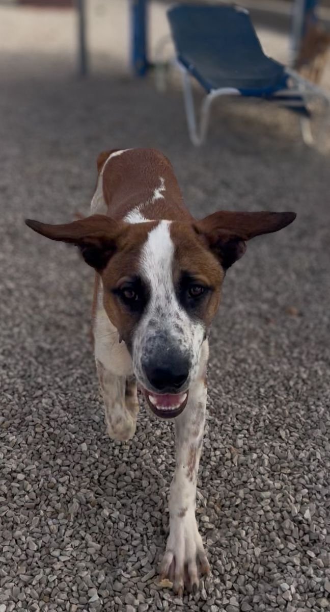 BODIE arrived at the shelter on 11 December 2023. She was very scared and very pregnant. Her 9 puppies were born at Christmas. She would not allow us near the puppies for weeks. All puppies were adopted in no time…but Bodie stayed and stayed…until this lovely German couple came by one and a half years later and fell in love with her. Their calm energy was exactly what Bodie needed. She has now come out of her shell and lives a life of a real princess!