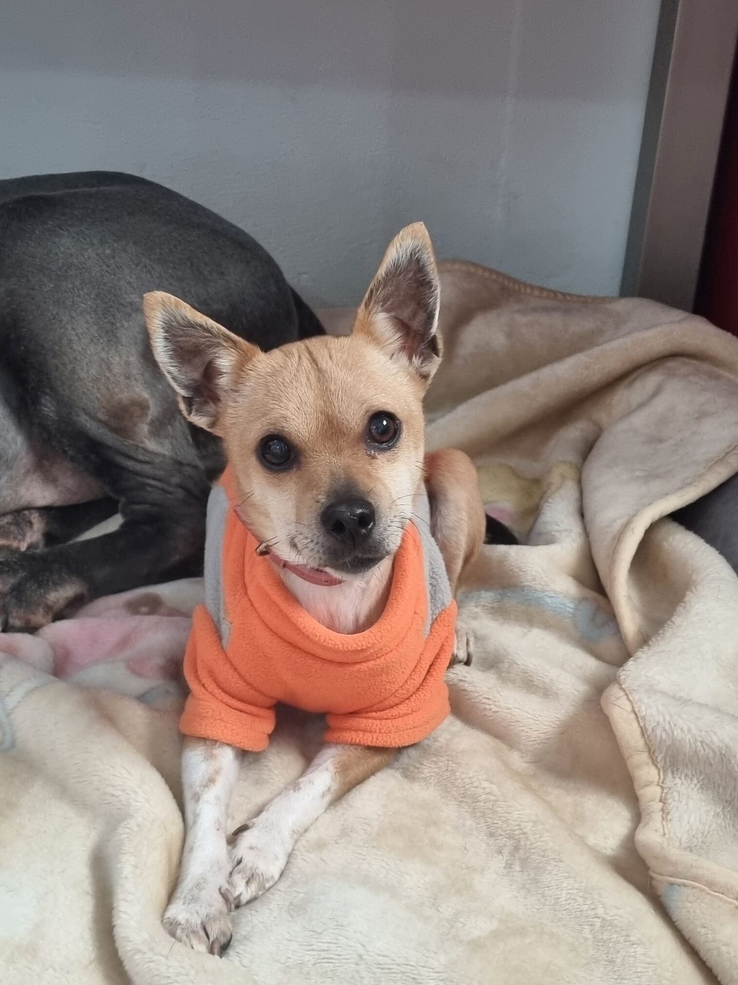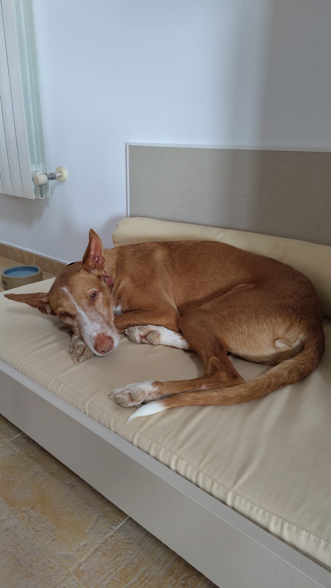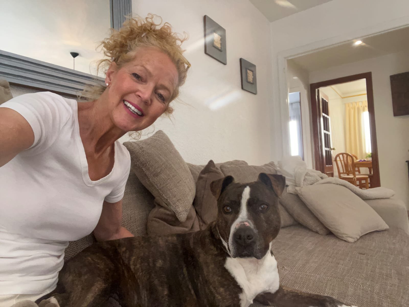 BODIE arrived at the shelter on 11 December 2023. She was very scared and very pregnant. Her 9 puppies were born at Christmas. She would not allow us near the puppies for weeks. All puppies were adopted in no time…but Bodie stayed and stayed…until this lovely German couple came by one and a half years later and fell in love with her. Their calm energy was exactly what Bodie needed. She has now come out of her shell and lives a life of a real princess!